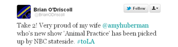 Huberman’s husband, rugby player Brian O’Driscoll congratulated her on Twitter: