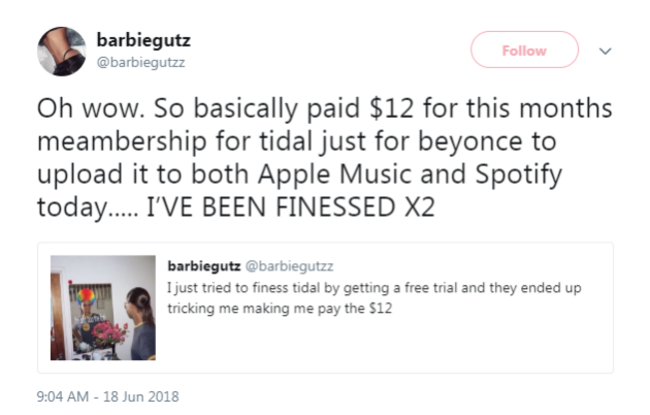 Anyway, some devoted fans are a bit cheesed off that the Carters decided to do this after they’d forked out for a Tidal subscription (listen, we all run out of fake emails eventually). Good luck cancelling those subscriptions lads! That’s a tenner you’ll never get back.