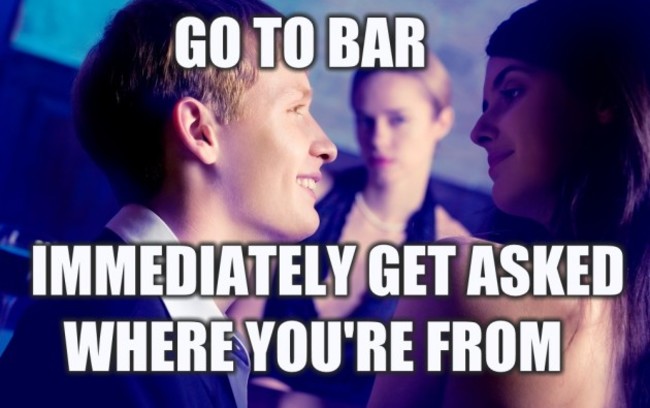 You go up to the bar to order a drink and you hear a voice in your ear. “So, are you from Dublin yourself?”
