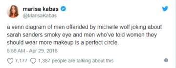 Secondly, it was not ‘intense criticism of her appearance’. Wolf said Huckabee Sanders had ‘perfect smoky eye’. If you’re a woman, you cannot get a higher compliment than that.