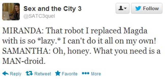 This Sex and the City 3 account @SATC3quel has to be our new favourite, taking the popular sitcom out of the 90s and into the future. Gems include: