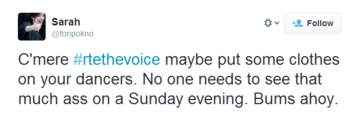 IT MAY BE a singing competition but music was the last thing on everyone’s minds after a raunchy Voice of Ireland performance inspired heated debate last night.
